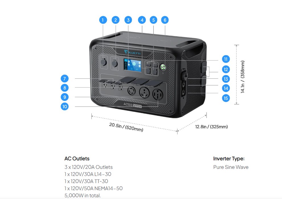 Bluetti AC500, yüksek enerji ihtiyacı olan kullanıcılar için tasarlanmış modüler ve genişletilebilir profesyonel güç istasyonudur. Ev yedek enerji sistemi, karavan kullanımı, off-grid yaşam ve ticari uygulamalar için güçlü ve uzun vadeli bir çözüm sunar.