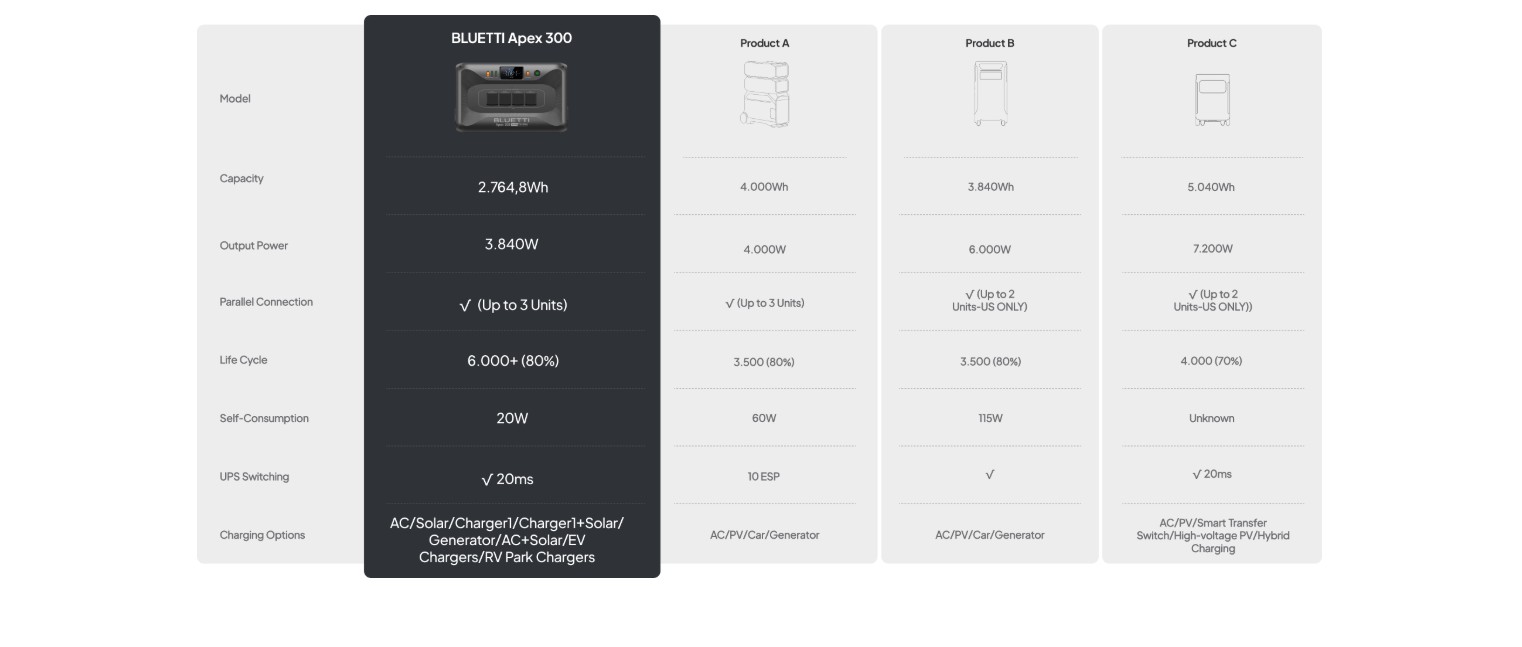 Bluetti Apex 300, taşınabilir güç istasyonları arasında öne çıkan yenilikçi bir üründür. Hem doğada hem de acil durumlarda güvenilir bir enerji kaynağı sunarak aktif hayatınızı kolaylaştırır. Hafif ve kompakt tasarımı sayesinde, bu güçlü güç istasyonu her yere rahatça taşınabilir.
