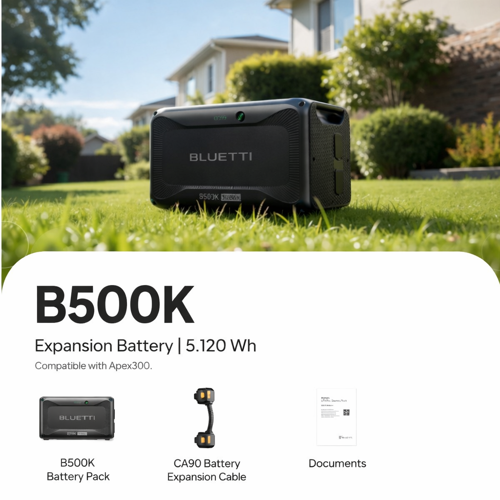 Bluetti B500K, Bluetti ekosistemi için geliştirilmiş yüksek kapasiteli modüler enerji depolama bataryasıdır. 5120Wh kapasitesi sayesinde AC500 ve uyumlu Bluetti güç istasyonları ile birlikte çalışarak eviniz veya iş yeriniz için uzun süreli ve güvenli enerji altyapısı oluşturur.