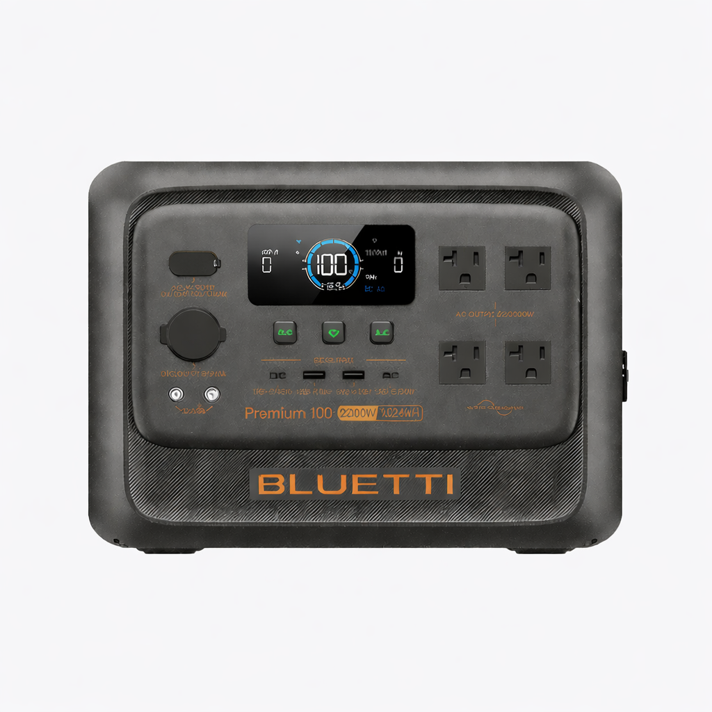 Bluetti Premium 100 V2, 1024Wh LiFePO4 batarya kapasitesi ve 2000W saf sinüs inverter gücü ile kamp, karavan ve mobil enerji ihtiyaçları için yüksek performanslı taşınabilir güç istasyonudur. Kompakt tasarımı ve güçlü inverter altyapısı sayesinde ev tipi cihazları güvenle çalıştırır.