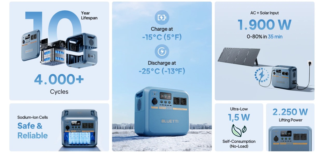 Birçok güç istasyonu düşük sıcaklıklarda performans kaybı yaşarken, bu model soğuk hava koşullarında stabil çalışacak şekilde tasarlanmıştır.